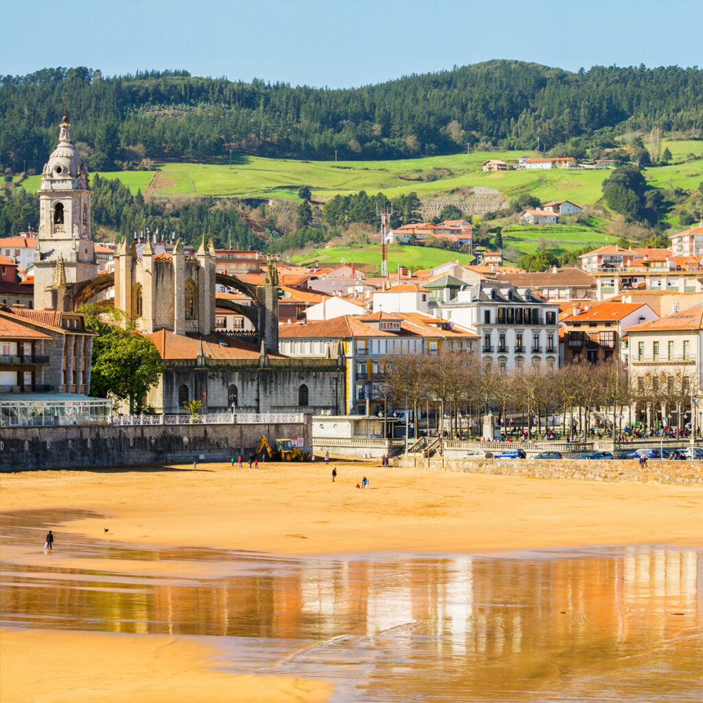 Lekeitio, A charming coastal town known for the Basilica of the Assumption, sandy beaches, and San Nicolás Island, accessible by foot at low tide.